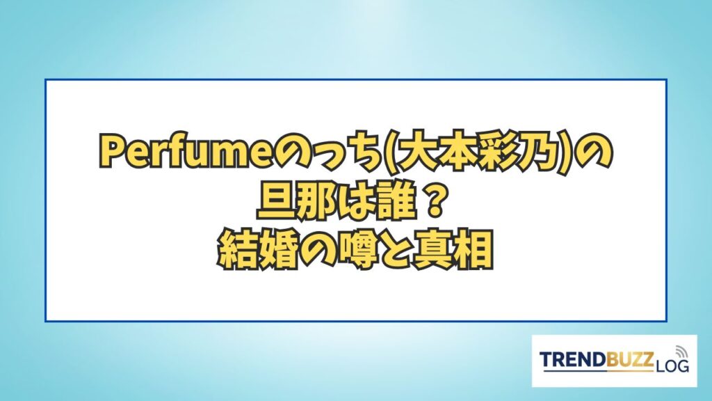 Perfumeの「のっち」こと大本彩乃さんについて、インターネット上では「旦那は誰?」「結婚しているの?」といった疑問が多く検索されています。 長年トップアイドルとして走り続けてきた彼女も、2025年9月には37歳を迎え、大人の女性としての魅力がさらに... 有名人・インフルエンサー