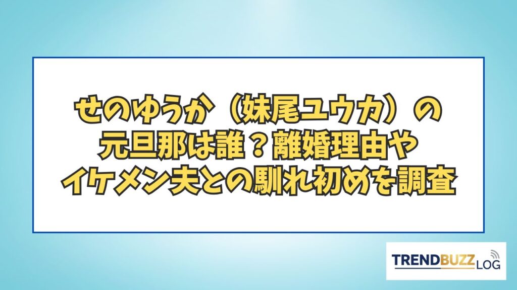 せのゆうか(妹尾ユウカ)の元旦那は誰?離婚理由やイケメン夫との馴れ初めを調査