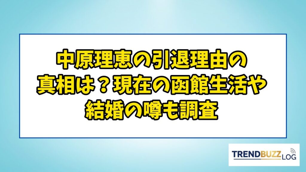 中原理恵の引退理由の真相は?現在の函館生活や結婚の噂も調査