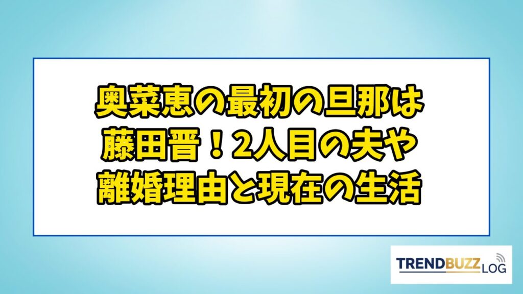 女優として数々のドラマや映画で活躍し、その変わらぬ美貌で注目を集め続ける奥菜恵さん。 清純派女優としてのイメージが強い彼女ですが、プライベートでは3度の結婚を経験していることをご存じでしょうか。 特に「最初の旦那」である有名IT社長との超セレ... 有名人・インフルエンサー