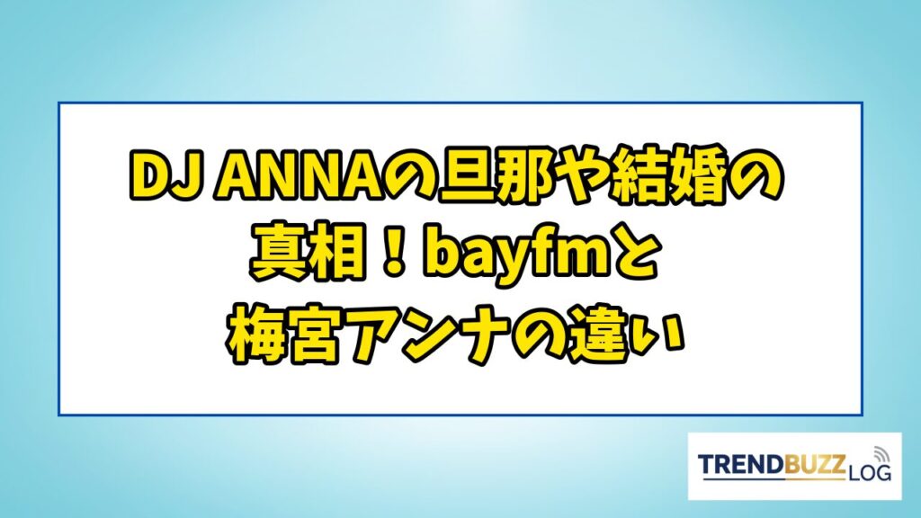 「DJ ANNA」と検索したときに、結婚や旦那さんに関する情報がいくつか出てきて、どれが正しいのか混乱してしまうことはありませんか。特に、千葉のラジオ局bayfmで平日の朝を彩る人気DJのANNAさんと、タレントやモデルとして活躍する梅宮アンナさんは、名... 有名人・インフルエンサー