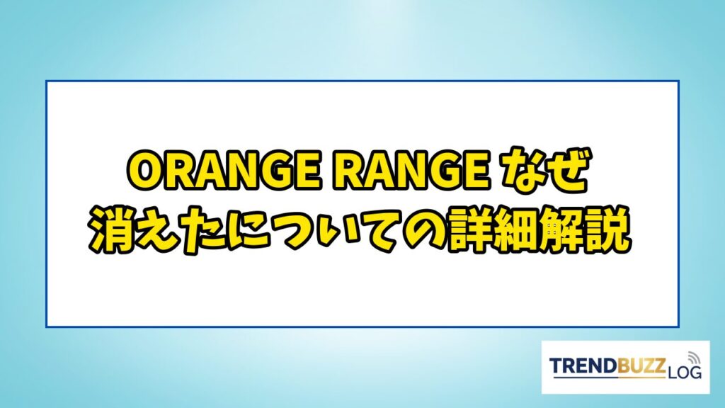 ORANGE RANGE なぜ消えたについての詳細解説