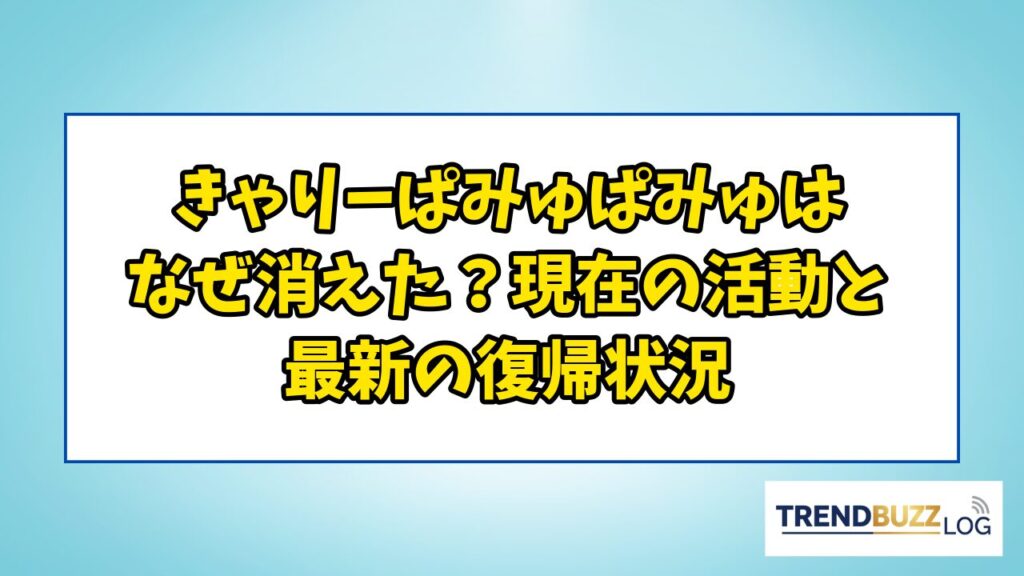 かつて原宿カルチャーの象徴として世界を席巻したきゃりーぱみゅぱみゅさんについて、最近テレビで見かけないと感じ、「なぜ消えたのか」と疑問を持つ方が増えています。一時はメディア露出が減ったように見えた彼女ですが、実際には海外公演の強化や、結... 有名人・インフルエンサー