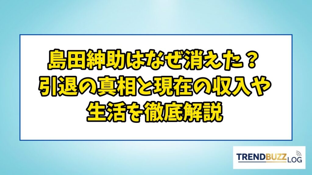かつてテレビで見ない日はないほど、圧倒的な司会力と影響力を誇った島田紳助氏。しかし、2011年に突然の芸能界引退を発表し、表舞台から姿を消しました。「島田紳助 なぜ消えたのか?」「現在はどこで何をしているのか?」今でも多くの人が疑問に思う、こ... 有名人・インフルエンサー