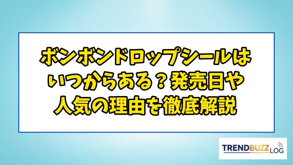 「ボンボンドロップシールって何?」「ボンドロって呼ばれてるけど同じもの?」といった疑問を持っている方は多いのではないでしょうか。 2024年3月の発売以来、子どもから大人まで幅広い世代で爆発的な人気となっているこのシールは、品薄状態が続き、ど... 話題・ニュース