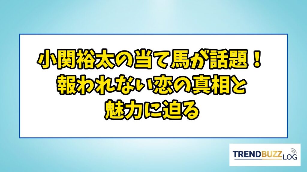 小関裕太の当て馬が話題!報われない恋の真相と魅力に迫る