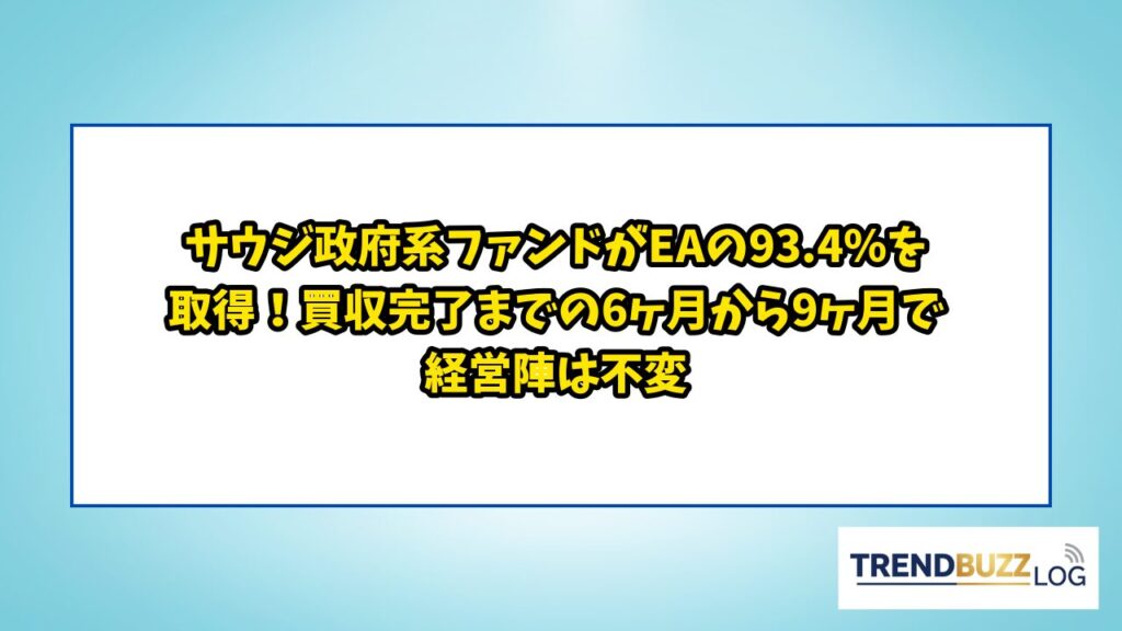 サウジ政府系ファンドがEAの93.4%を取得!買収完了までの6ヶ月から9ヶ月で経営陣は不変