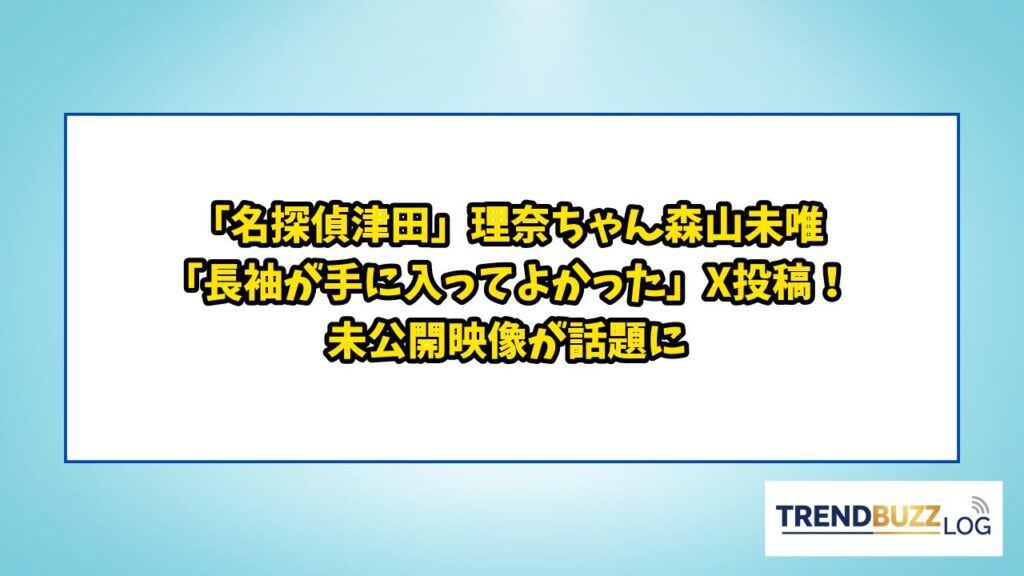 「名探偵津田」理奈ちゃん森山未唯「長袖が手に入ってよかった」X投稿!未公開映像が話題に