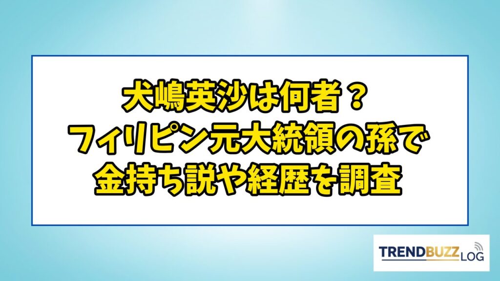テレビのバラエティ番組で見かける機会が増え、その明るいキャラクターと衝撃的なエピソードで注目を集めている犬嶋英沙さん。「結局、犬嶋英沙って何者なの?」 「フィリピンの元大統領が親戚って本当?」 「実家がお金持ちという噂は事ちなのか?」この... -