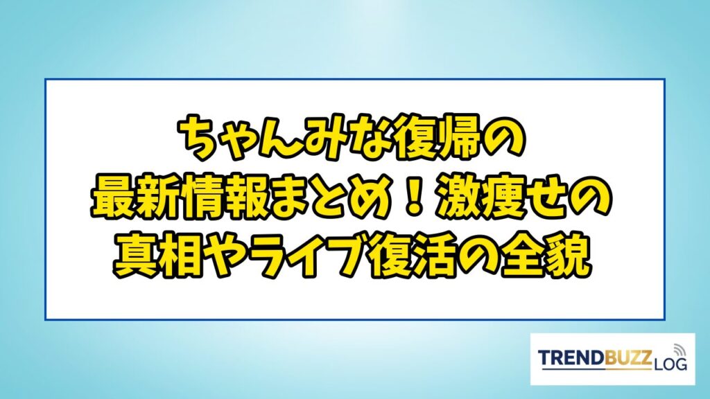 ちゃんみな復帰の最新情報まとめ!激痩せの真相やライブ復活の全貌