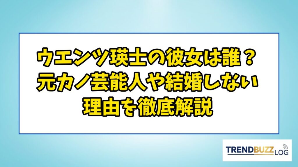 バラエティ番組や舞台でマルチに活躍するウエンツ瑛士さんですが、その端正なルックスとは裏腹に、独身生活が長いことでも知られています。 「現在は彼女がいるの?」 「過去に噂になった芸能人とはどうなった?」 「結婚願望はあるのに、なぜ結婚しないの... -