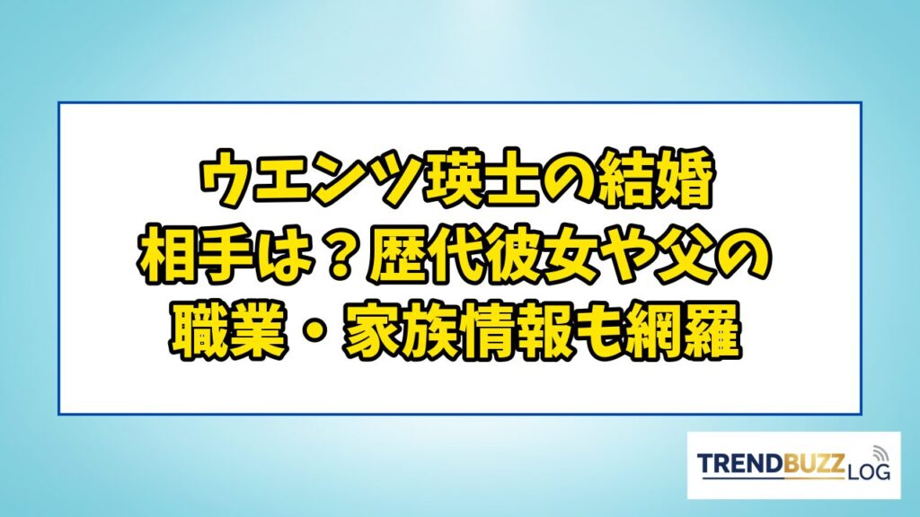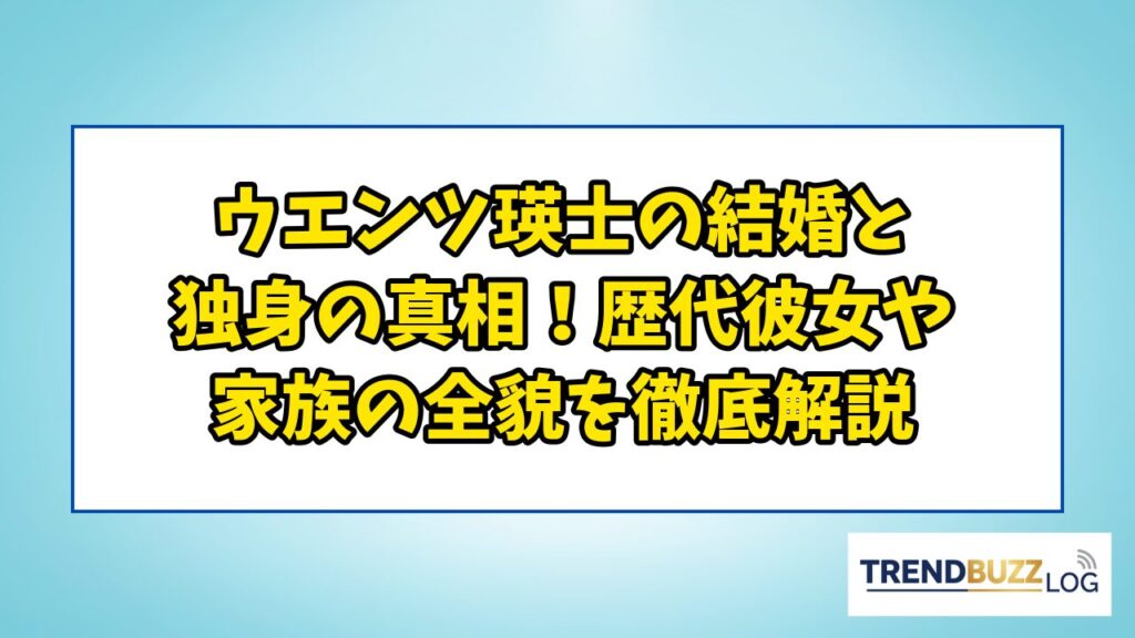 テレビで見ない日はないほどマルチに活躍するウエンツ瑛士さんですが、プライベートな部分、特に「結婚」については謎に包まれていると感じることはないでしょうか。「あれだけイケメンなのになぜ独身なの?」「過去に噂になったあの女優さんとはどうなっ... -