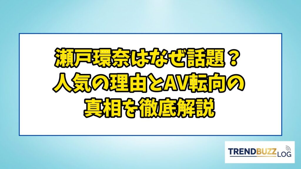 瀬戸環奈はなぜ話題?人気の理由とAV転向の真相を徹底解説