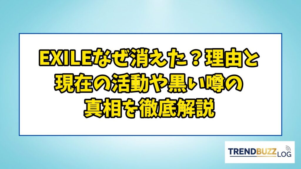 EXILEなぜ消えた?理由と現在の活動や黒い噂の真相を徹底解説
