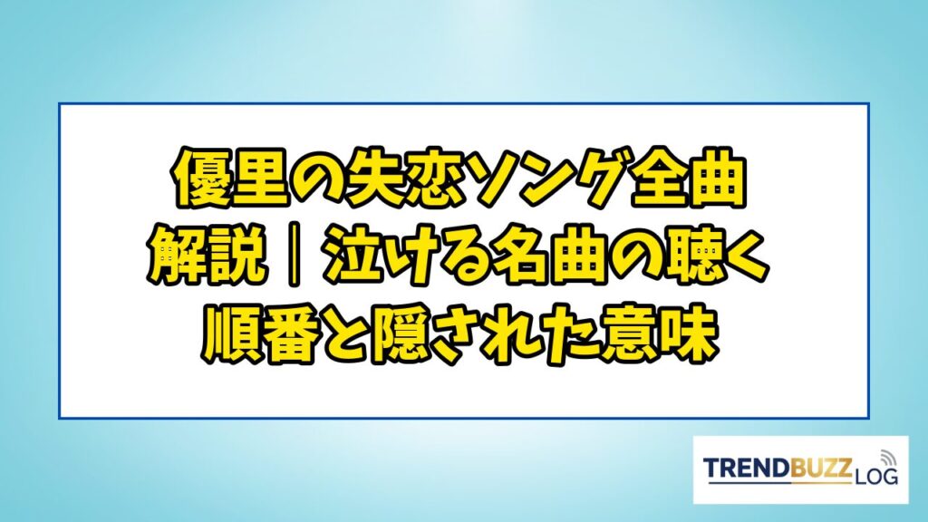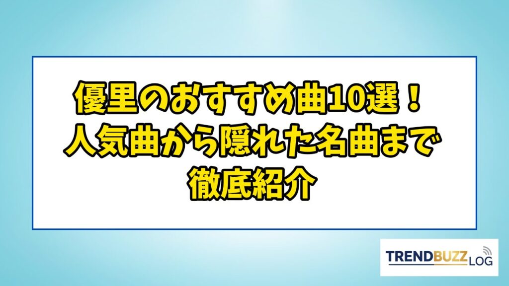 「もう会えないあの人を思い出して、気づけば優里の曲を再生していた」——そんな経験を持つ方は少なくないでしょう。 優里は、2020年のメジャーデビュー以降、数々の恋愛をテーマにした楽曲で日本の音楽シーンを席巻してきました。 とりわけ失恋ソングにお... -