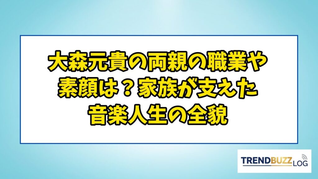 Mrs. GREEN APPLEのボーカルとして圧倒的な人気を誇る大森元貴さん。 楽曲の才能やパフォーマンスに注目が集まる一方で、「大森元貴さんの両親はどんな人なのか」「母親や父親の職業は公表されているのか」といった家族に関する疑問を持つファンも少なくあ... -