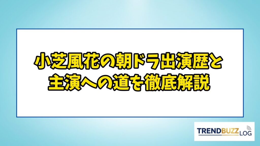小芝風花の朝ドラ出演歴と主演への道を徹底解説