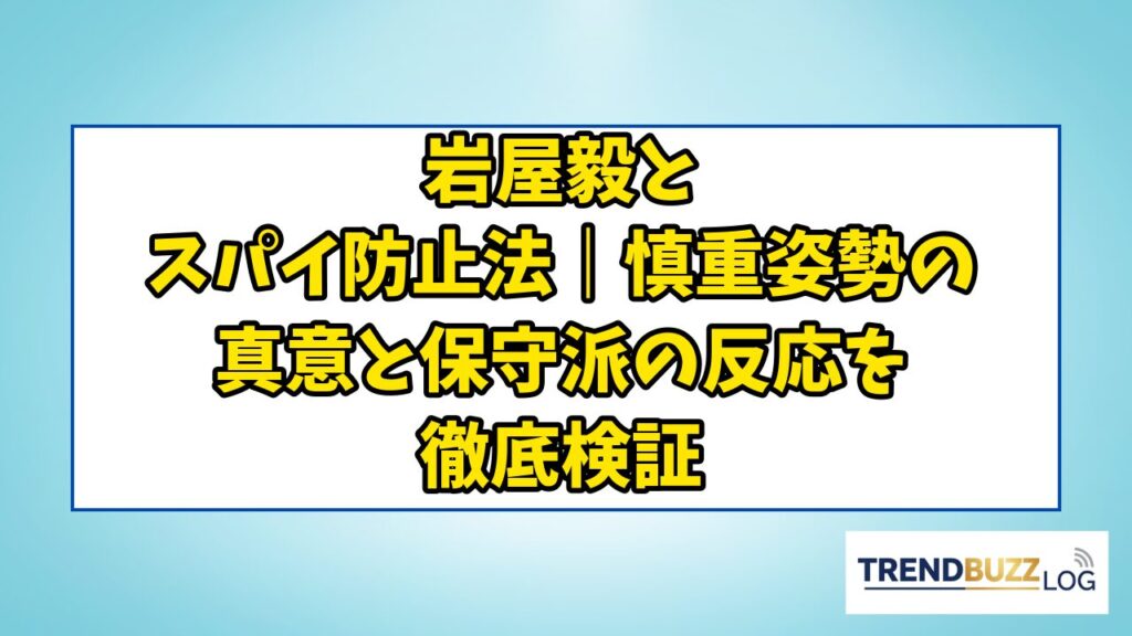 「岩屋毅はスパイ防止法に反対しているのか」——この問いが、2025年を通じて日本の政治SNSで繰り返し取り上げられてきました。 外務大臣として石破内閣を支えた岩屋毅氏は、スパイ防止法の制定をめぐって「私は慎重だ」と国会で明言し、保守派議員やネット... -