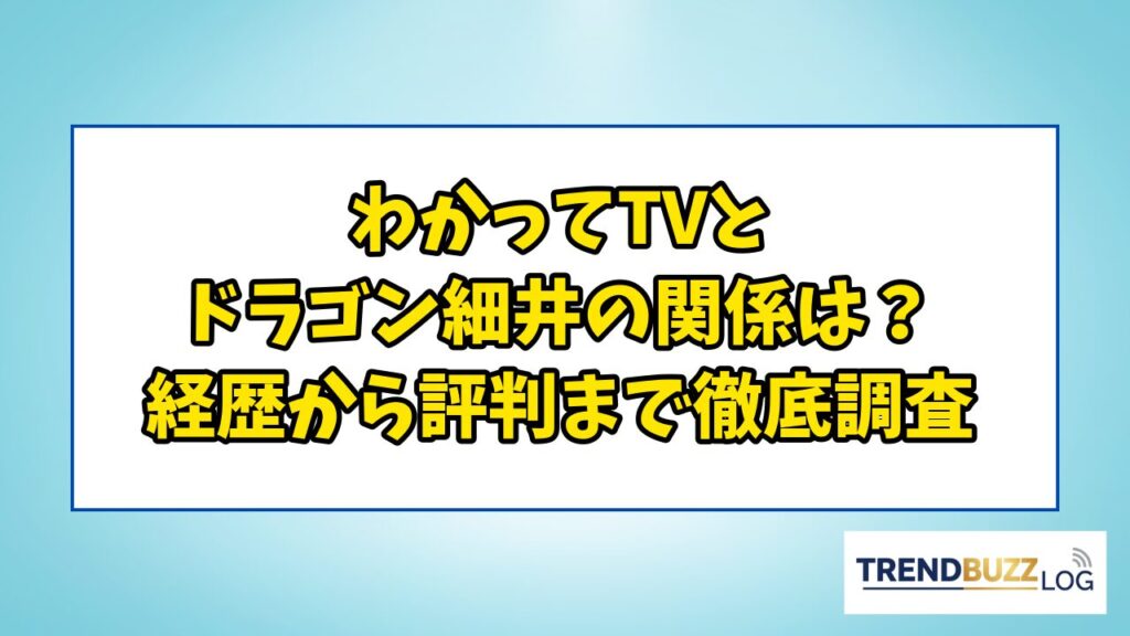 わかってTVとドラゴン細井の関係は?経歴から評判まで徹底調査