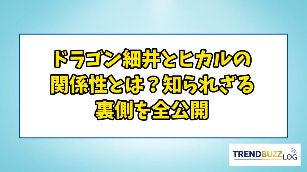 ドラゴン細井とヒカルの関係性とは?知られざる裏側を全公開