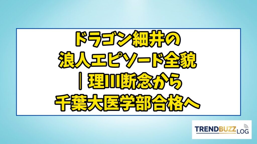 ドラゴン細井の浪人エピソード全貌|理Ⅲ断念から千葉大医学部合格へ