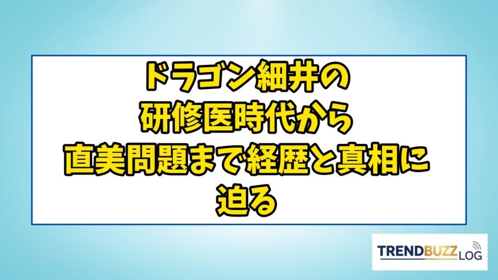 ドラゴン細井の研修医時代から直美問題まで経歴と真相に迫る