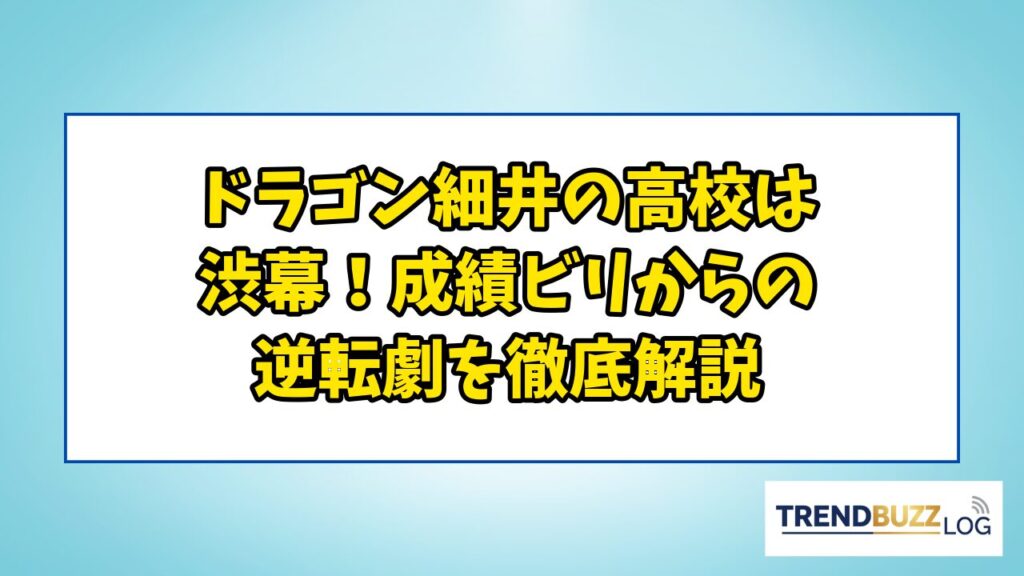 ドラゴン細井の高校は渋幕!成績ビリからの逆転劇を徹底解説