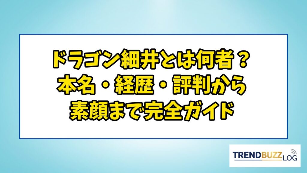 ドラゴン細井とは何者?本名・経歴・評判から素顔まで完全ガイド