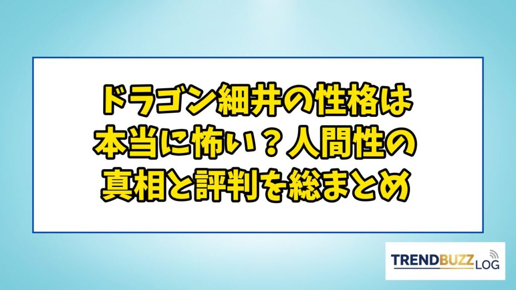 ドラゴン細井の性格は本当に怖い?人間性の真相と評判を総まとめ