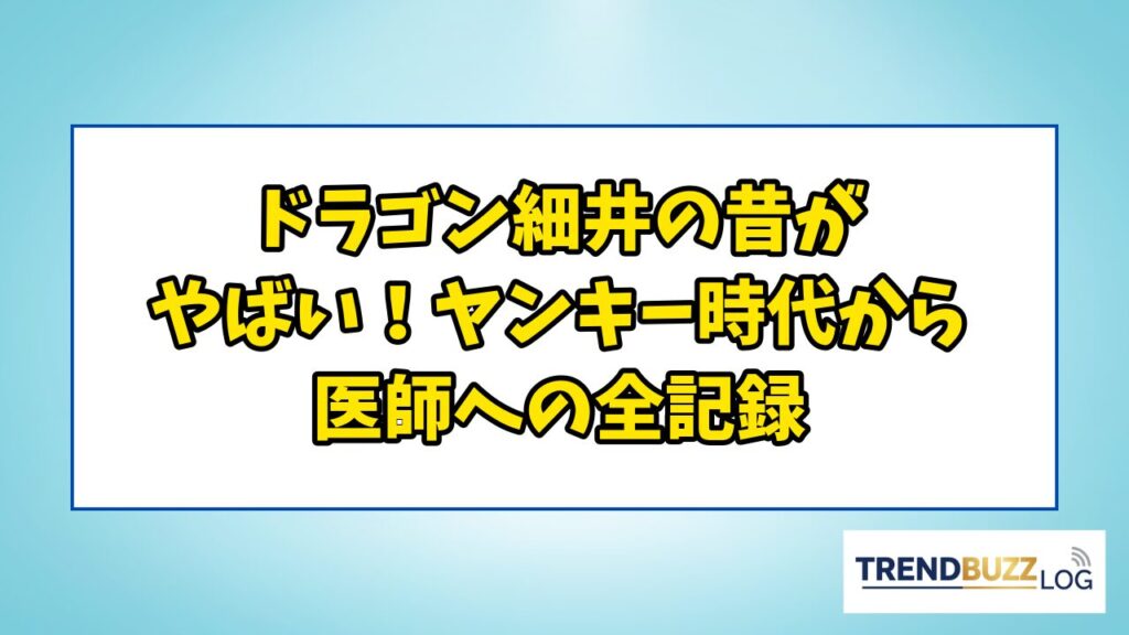 ドラゴン細井の昔がやばい!ヤンキー時代から医師への全記録