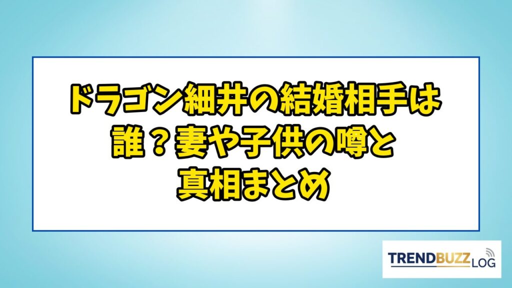 ドラゴン細井の結婚相手は誰?妻や子供の噂と真相まとめ