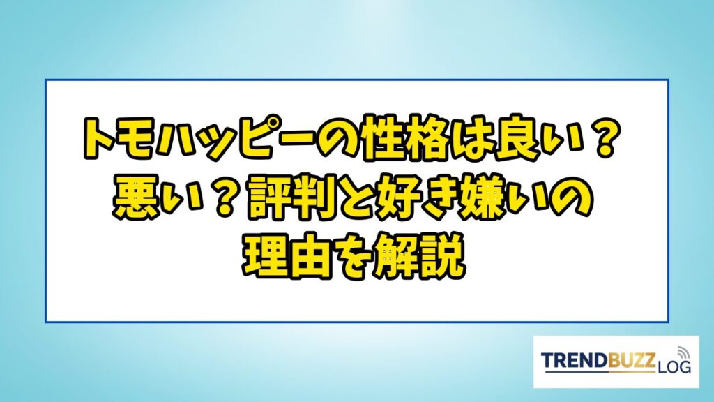 トモハッピーの性格は良い?悪い?評判と好き嫌いの理由を解説