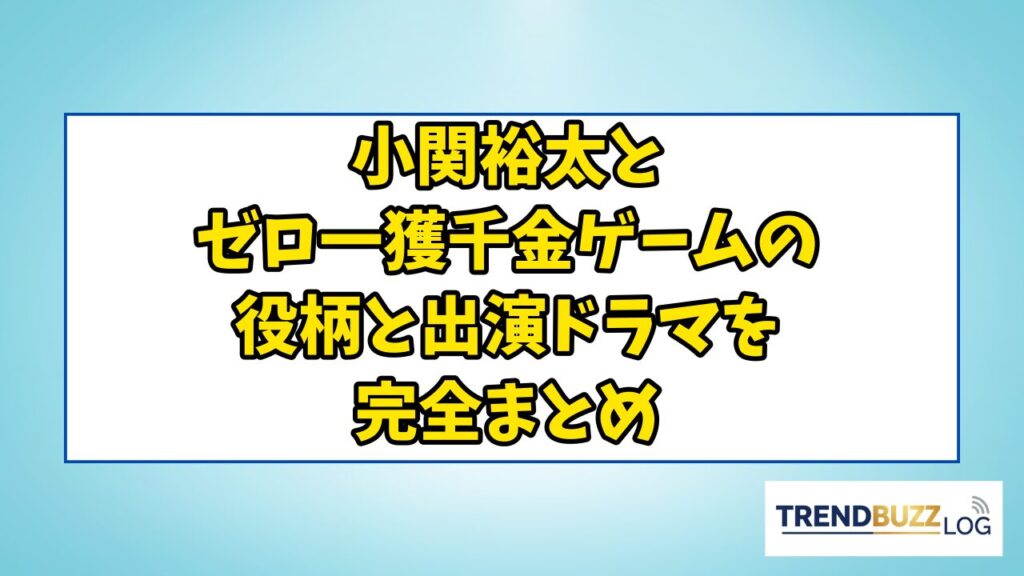 小関裕太とゼロ一獲千金ゲームの役柄と出演ドラマを完全まとめ