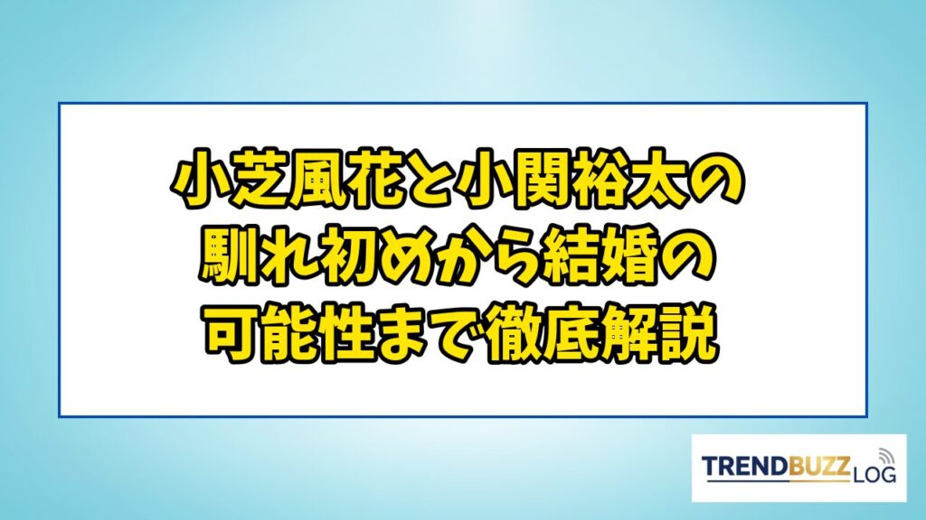 2026年4月、女優・小芝風花さんと俳優・小関裕太さんの熱愛が「週刊文春」によってスクープされ、エンタメ界に大きな話題をもたらしました。 「お相手はどんな人?」「2人の馴れ初めは?」「結婚はいつ?」と、気になることが山ほどある方も多いのではないで... -