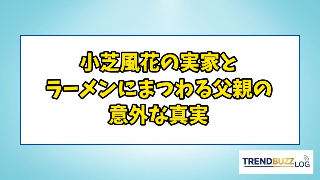 小芝風花の実家とラーメンにまつわる父親の意外な真実