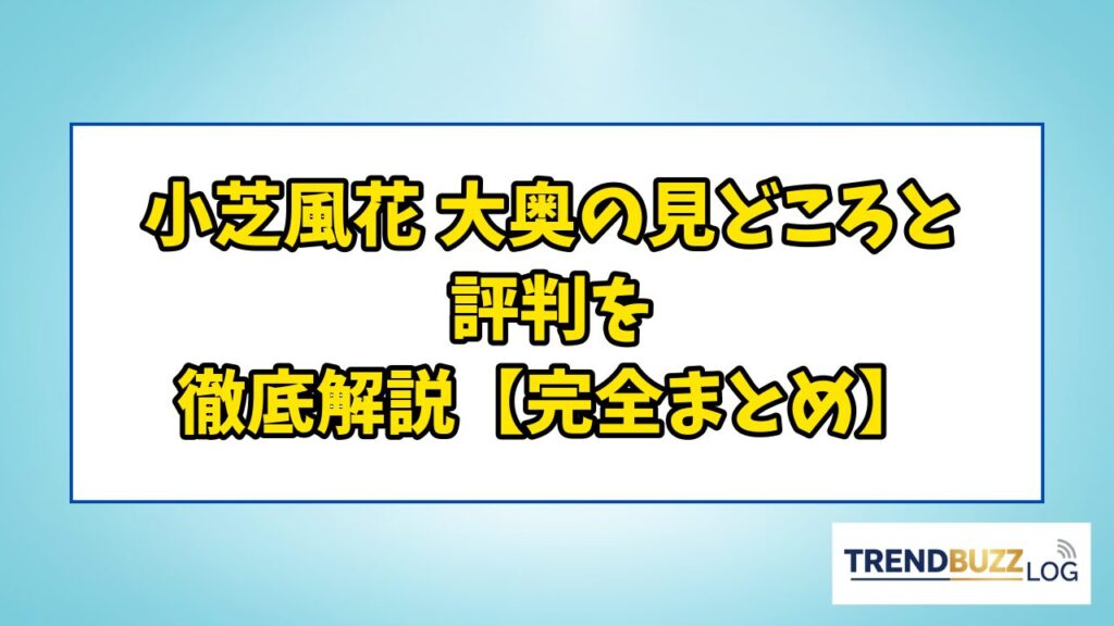 小芝風花 大奥の見どころと評判を徹底解説【完全まとめ】