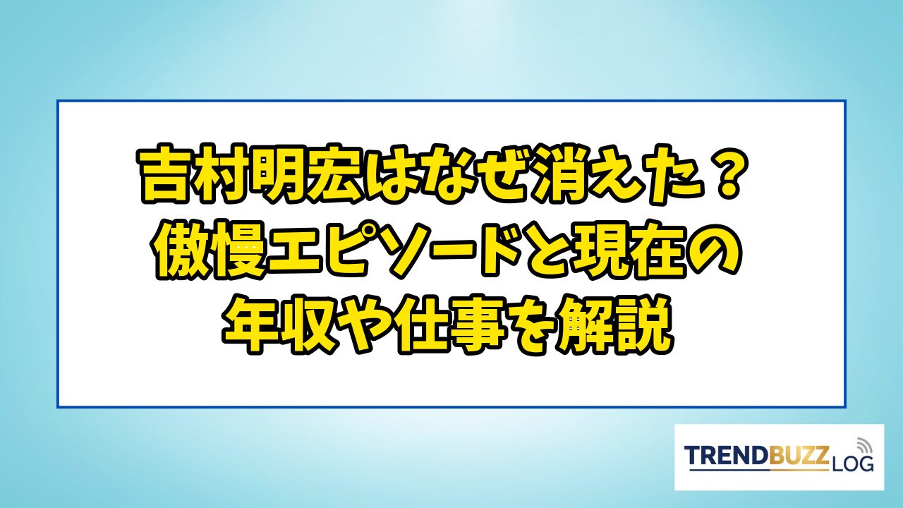 この記事では、吉村明宏さんが芸能界の表舞台から消えた衝撃の理由や、テレビ番組『しくじり先生』で語られた驚きの天狗エピソード、そして気になる現在の年収や家族との関係について詳しく解説します。