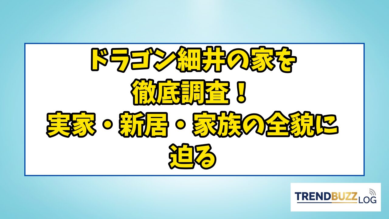 この記事では、ドラゴン細井の家にまつわるあらゆる情報を網羅的に整理し、実家の環境から家族構成、教育論、経歴、資産に関する情報まで、確認できる事実をもとに徹底的に解説していきます。
