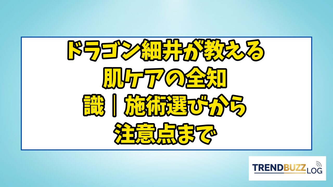 この記事では、ドラゴン細井の経歴やスキンケアに関する主張、推奨する肌治療の施術、そして注意すべきポイントまでを網羅的に解説していきます。