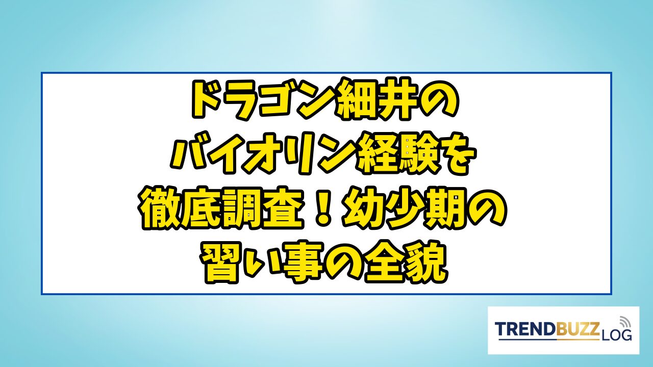 この記事では、ドラゴン細井とバイオリンの関係を徹底的に深掘りし、楽器を始めた時期や背景、音楽が脳の発達に与える影響、そして教育論との結びつきまで、あらゆる角度から解説していきます。