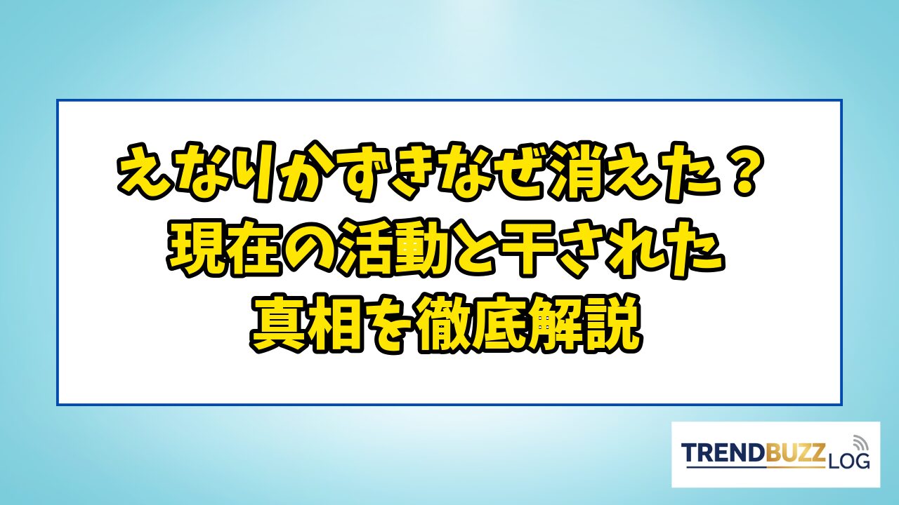 国民的子役として一世を風靡したえなりかずきさんですが、一時期テレビでの露出が減ったことで「消えた」「干された」という噂が囁かれています。