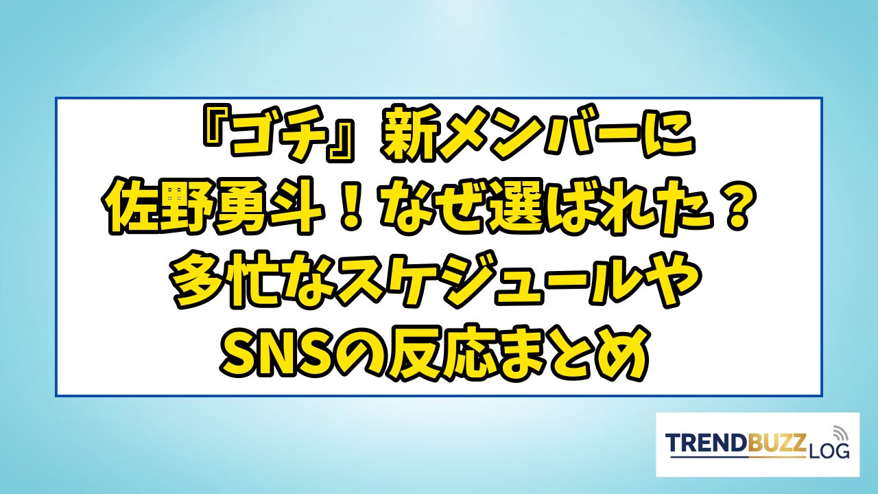 この記事では、ゴチ新メンバーに選ばれた佐野勇斗さんの素顔や加入の背景、さらには多忙を極める2026年の最新スケジュールについて詳しく解説します。