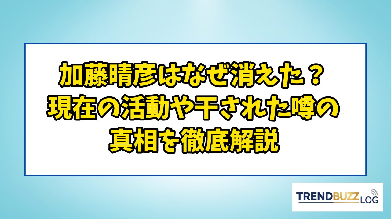 まとめ:加藤晴彦はなぜ消えた?の真相