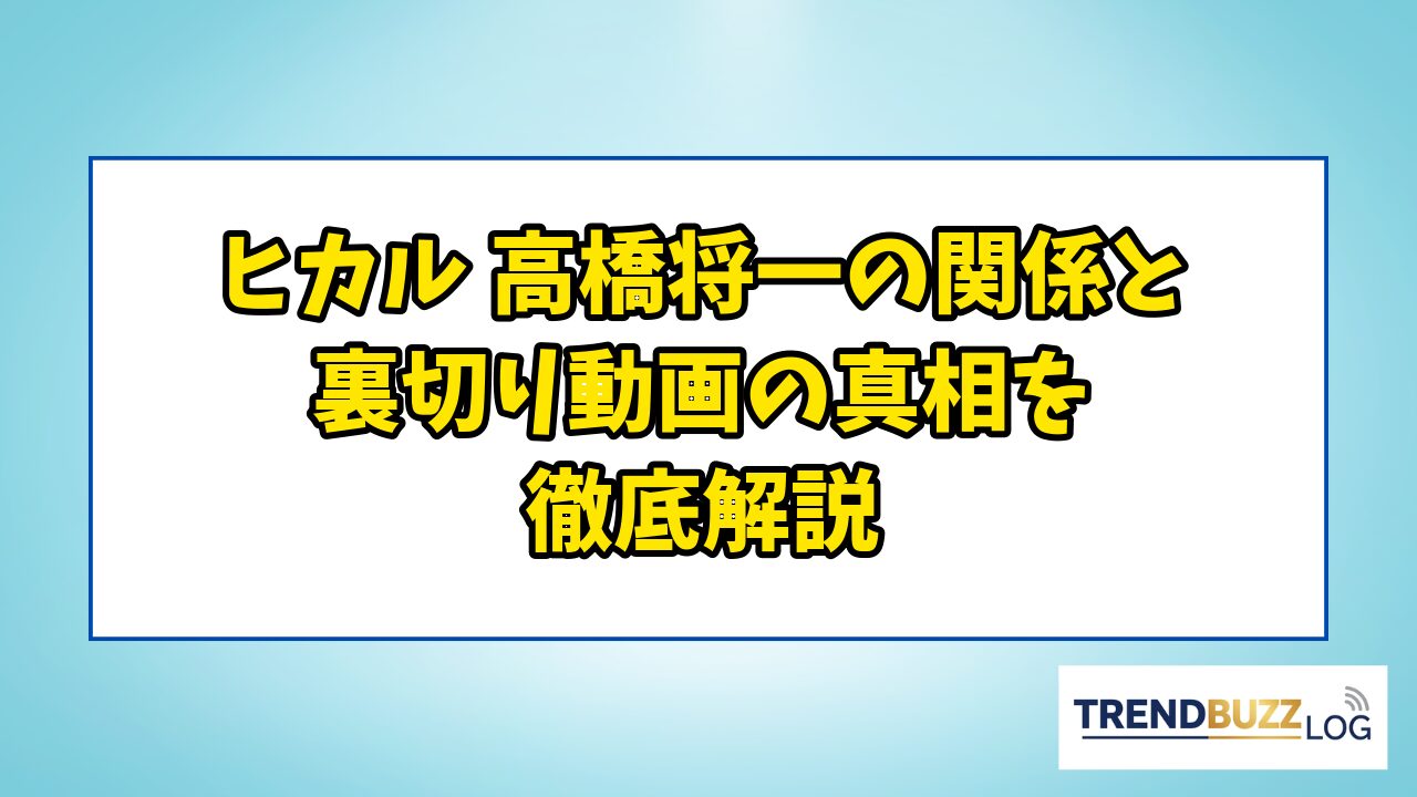 「高橋将一とは何者なのか」「ヒカルとはどのような関係なのか」「裏切り動画の真相は何だったのか」といった疑問を持つ方も多いのではないでしょうか。