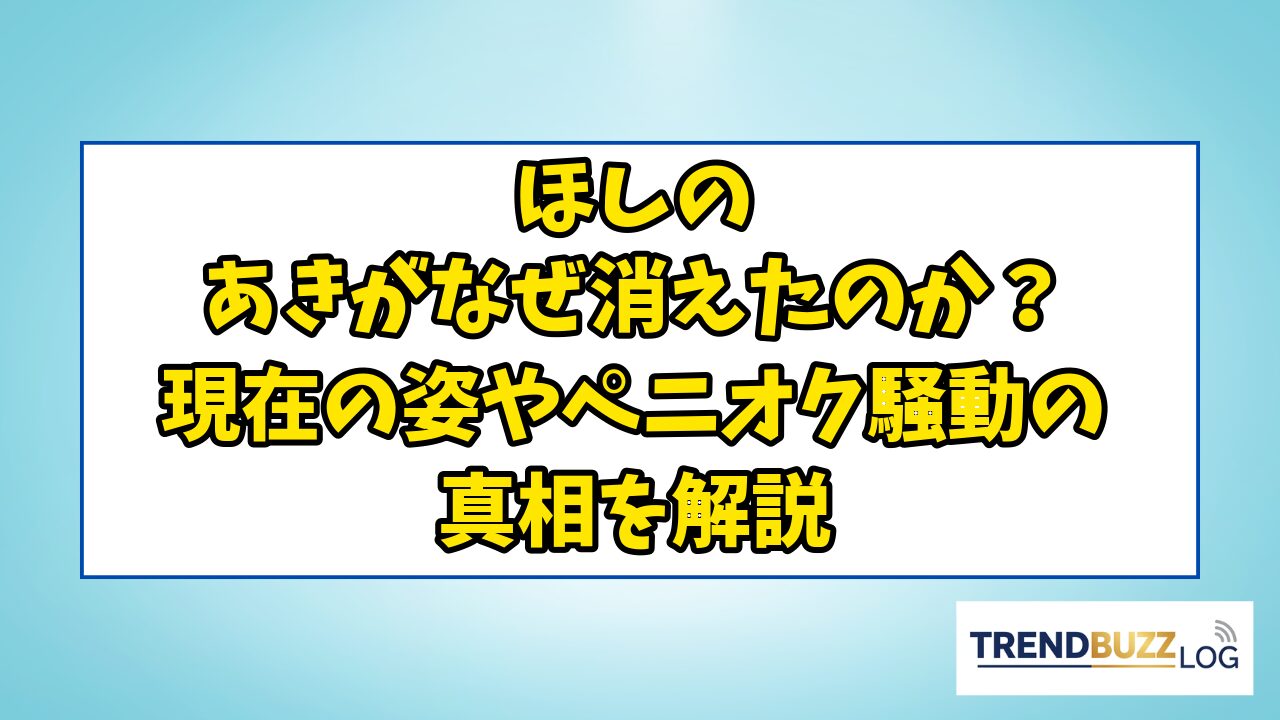 この記事では、ほしのあきさんがテレビから消えた真相や、世間を騒がせたペニーオークション事件の背景、そして驚きの「現在の姿」について詳しく紹介します。
