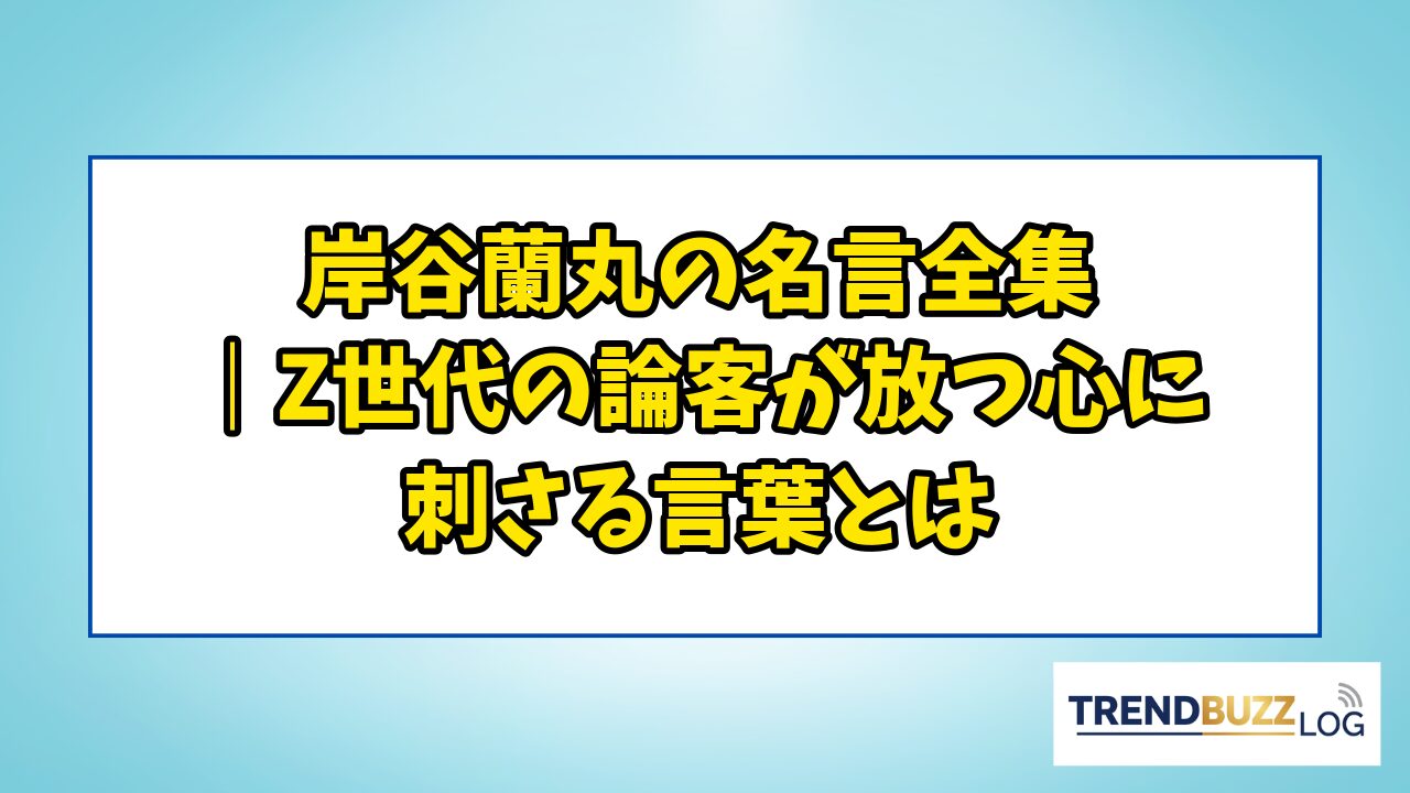 【2026年最新】岸谷蘭丸の注目すべき新たな名言と動向