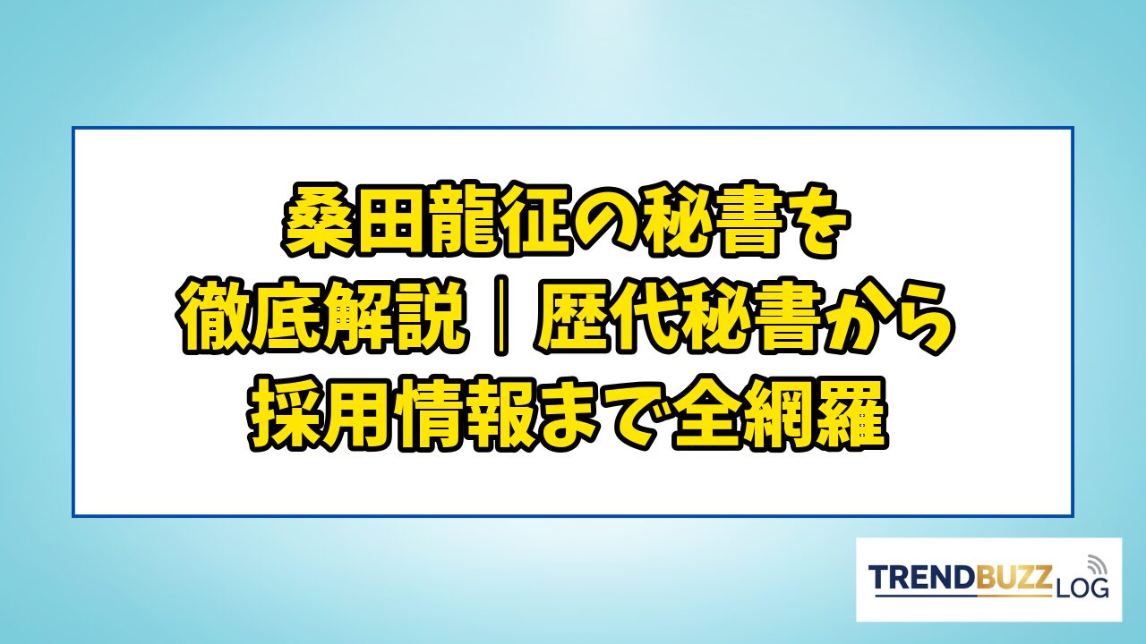 この記事では、桑田龍征の秘書に関するあらゆる情報を、基本的な役割から最新の募集状況まで体系的に整理してお届けします。