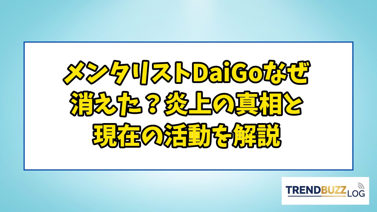 メンタリストDaiGoさんが「消えた」と認識されるようになった主な要因は、大きく分けて2つあります。
