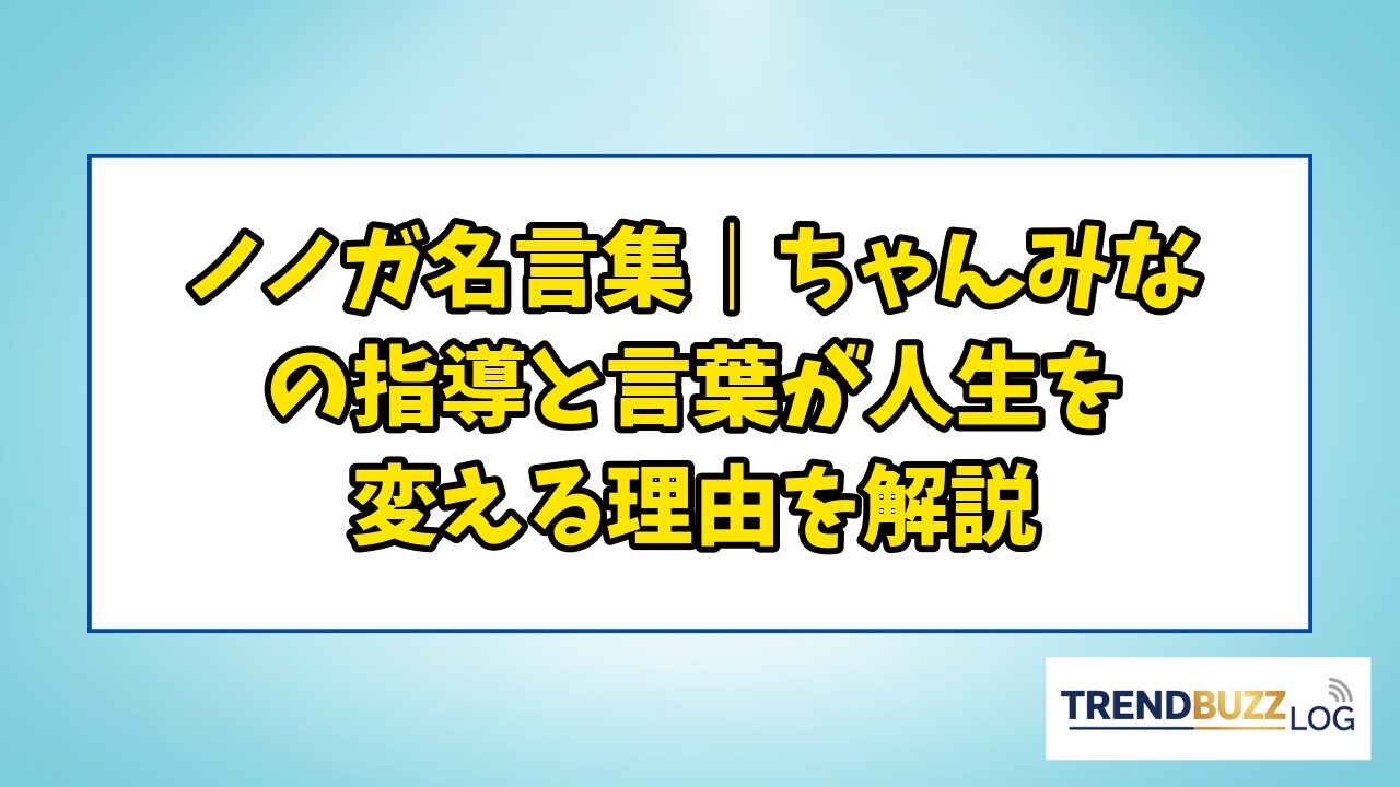 ノノガ名言集|ちゃんみなの指導と言葉が人生を変える理由を解説