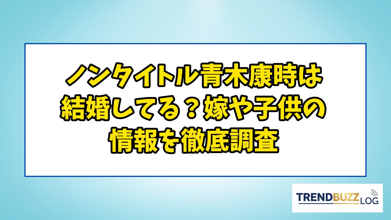 この記事では、ノンタイトルの青木康時さんの結婚や家族に関する情報を徹底的に調査し、わかりやすくまとめました。